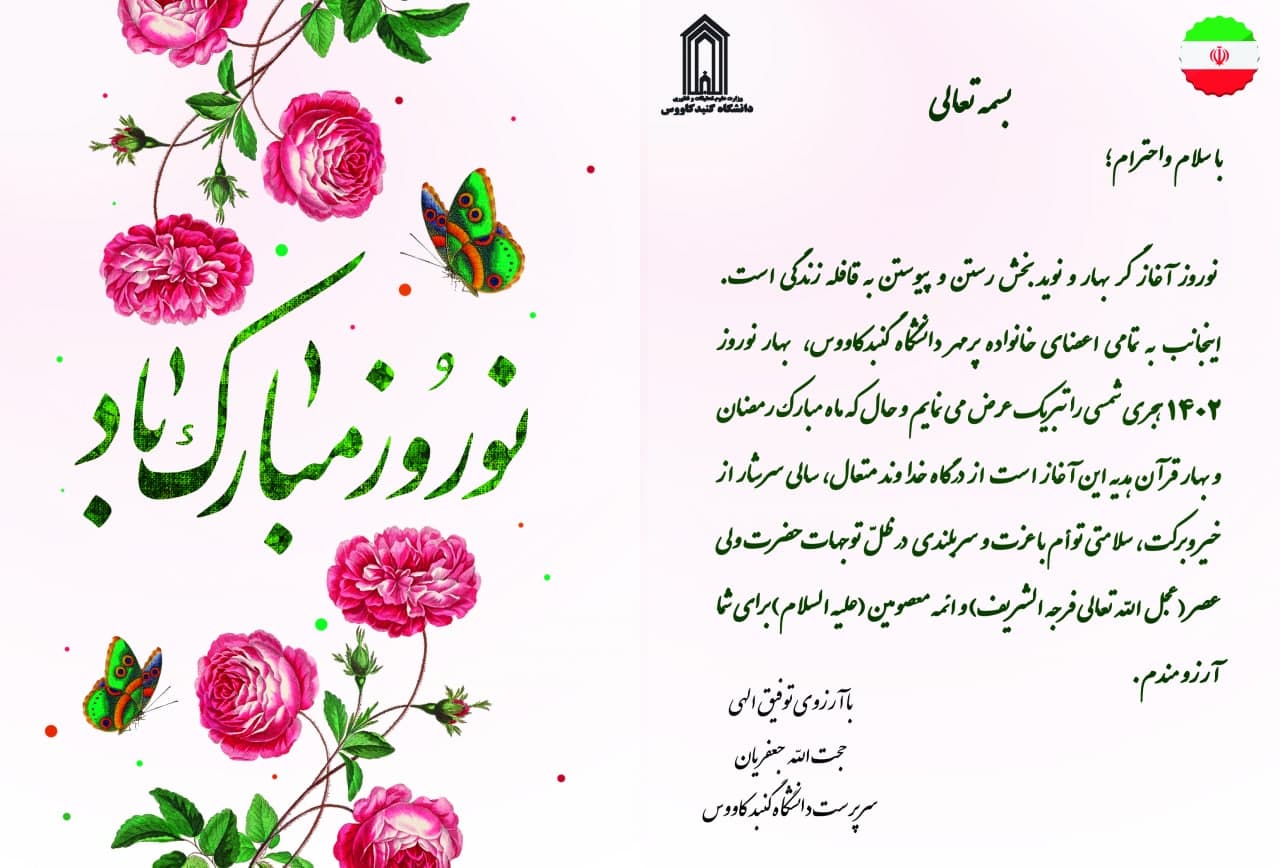 پيام تبريك سرپرست دانشگاه گنبدكاووس جناب آقاي دكتر حجت الله جعفريان به مناسبت فرا رسيدن سال نو شمسي.