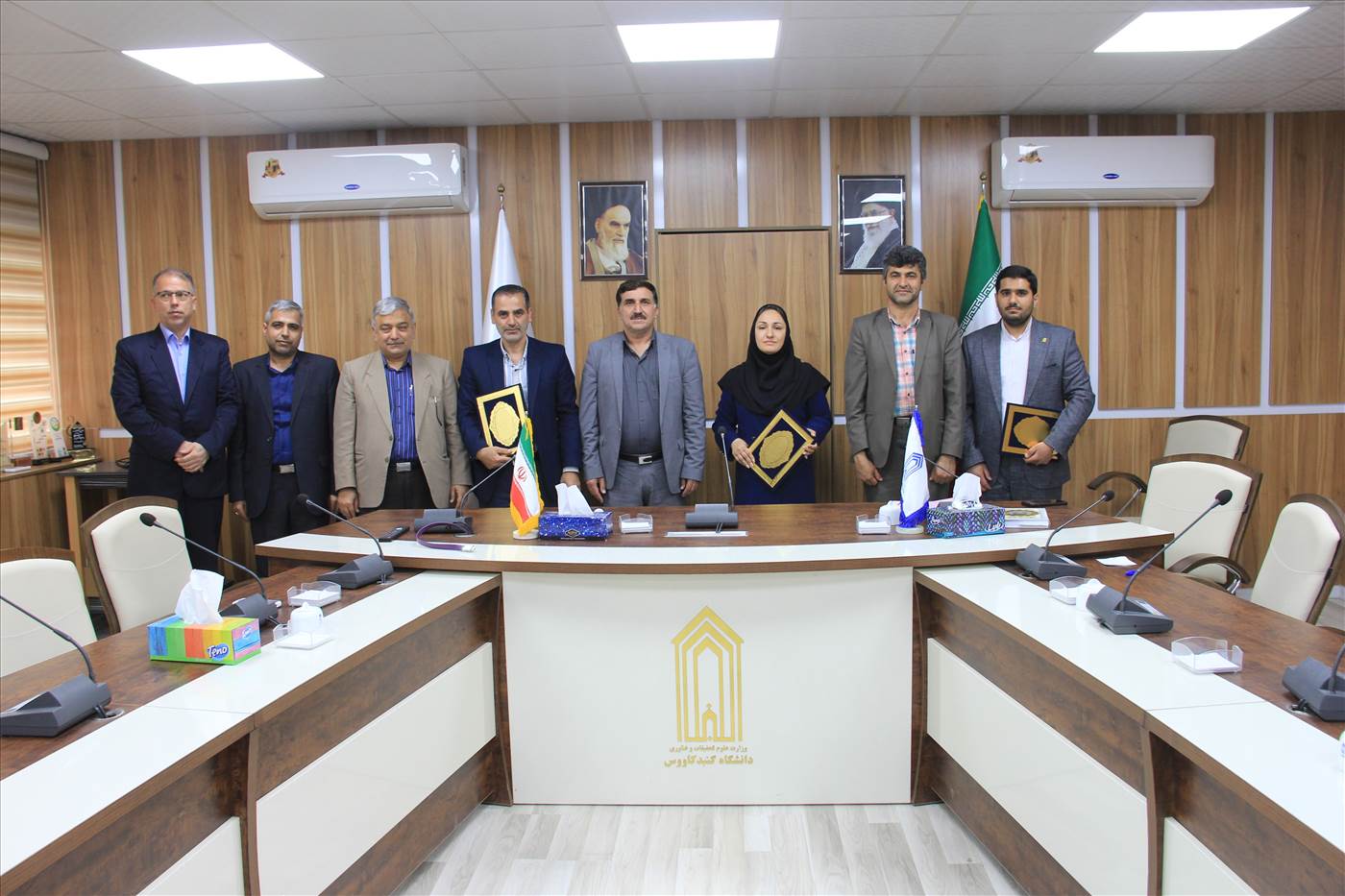 جلسه تکریم و معارفه سرپرست دفتر ریاست، روابط عمومی و امور بین الملل و مدیر اداری و پشتیبانی دانشگاه گنبدکاووس در روز چهارشنبه مورخ 1402/02/06 در محل سالن جلسات حوزه ریاست دانشگاه با حضور سرپرست دانشگاه و جمعی از مسئولین و کارشناسان دانشگاه برگزار شد. در ابتدای این جلسه جناب آقای دکتر حجت اله جعفریان سرپرست دانشگاه گنبدکاووس، دکتر ابراهیم غلامعلی پور علمداری عضو هیئت علمی گروه تولیدات گیاهی دانشکده کشاورزی و منابع طبیعی را به عنوان سرپرست دفتر ریاست، روابط عمومی و امور بین الملل دانشگاه گنبدکاووس معرفی نمود و در ادامه این جلسه جناب آقای دکتر حجت اله جعفریان از زحمات صادقانه و تلاشهای دلسوزانه سرکار خانم مهندس حکیمه مصطفیلو مدیر اداری و پشتیبانی دانشگاه تقدیر نمود و جناب آقای مهندس امین سعیدی را به عنوان مدیر جدید در این سمت معرفی نمود.