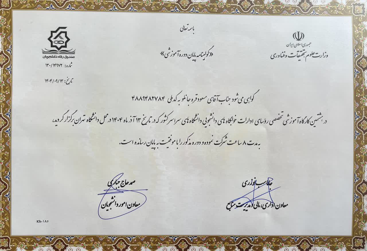 حضور رئیس اداره امور خوابگاه ها و رفاه دانشجویی دانشگاه گنبدکاووس در هشتمین نشست تخصصی روسای ادارات خوابگاه های دانشجویی به میزبانی دانشگاه تهران