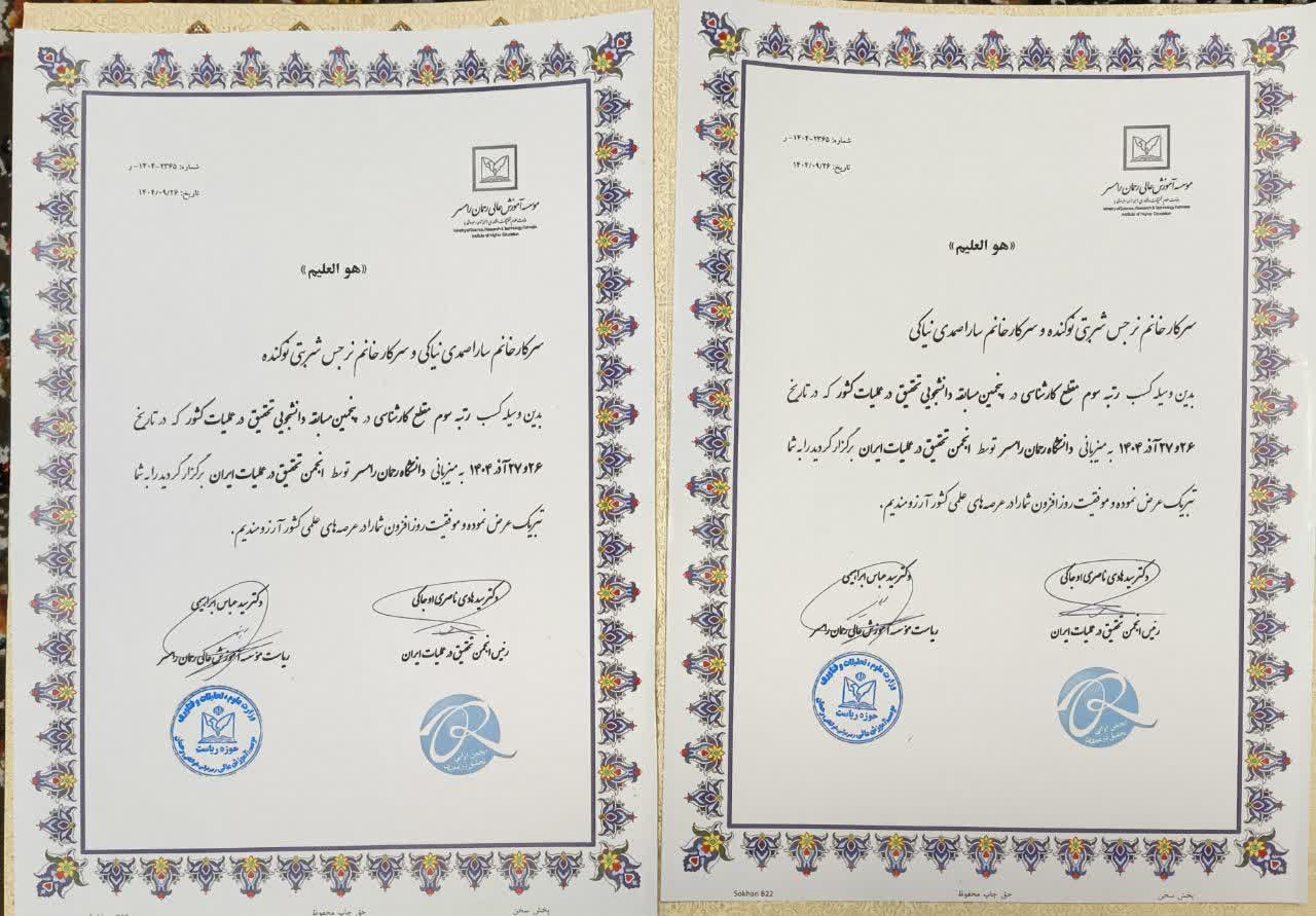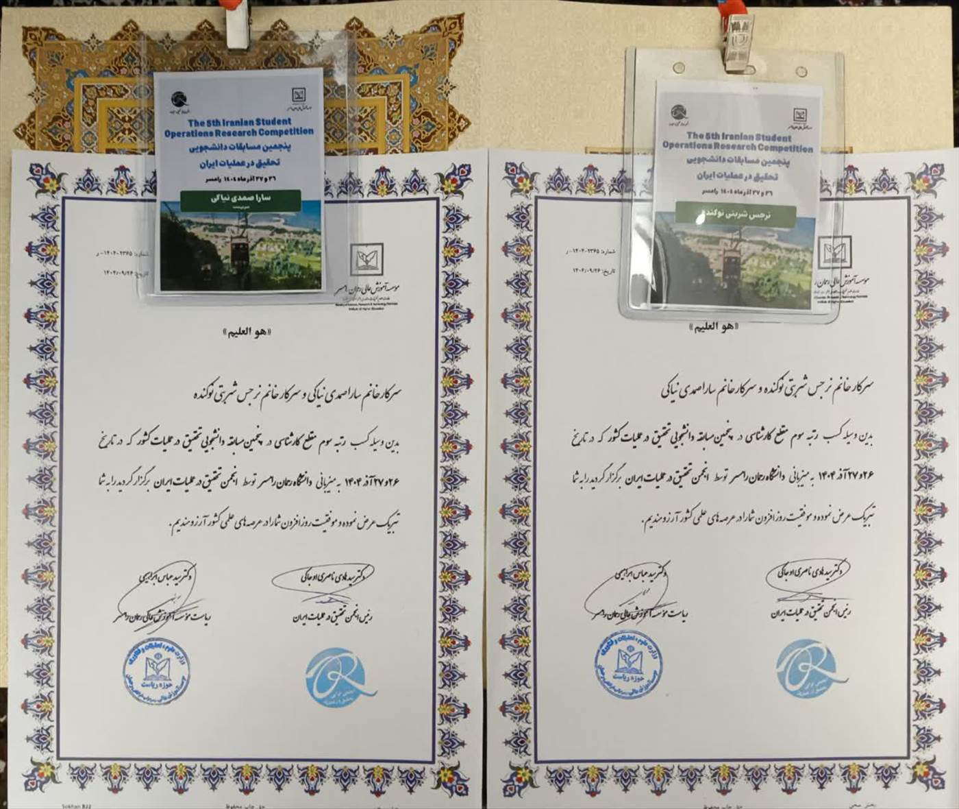 کسب مقام سوم پنجمین مسابقه دانشجویی تحقیق در عملیات کشور توسط خانم نرجس شربتی نوکنده و خانم سارا صمدی نیاکی دانشجویان دانشکده آزادشهر( واحدخواهران).